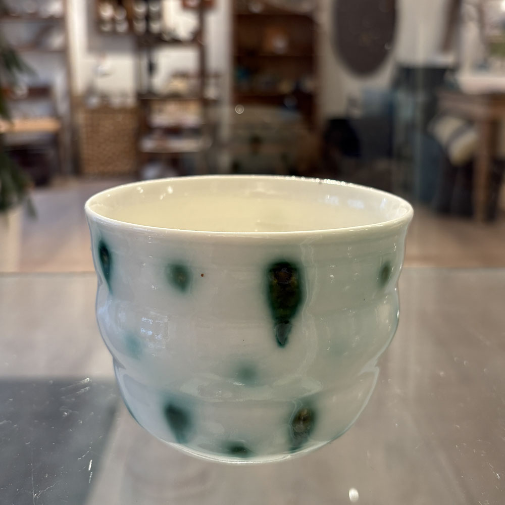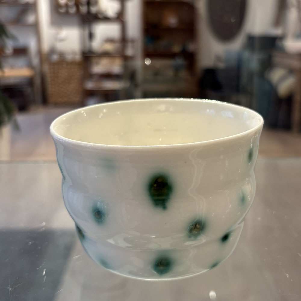 Kop i porcelæn med prikker – et typisk PiaV-udtryk – også som fyrfadslysholder