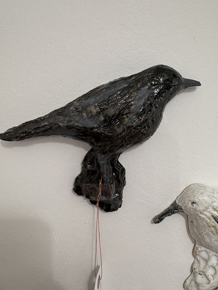 NordicBirds –Solsort (hun) | Håndlavet keramikfugl til væg – PiaV Keramik