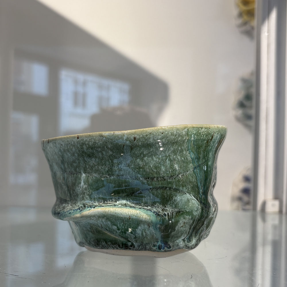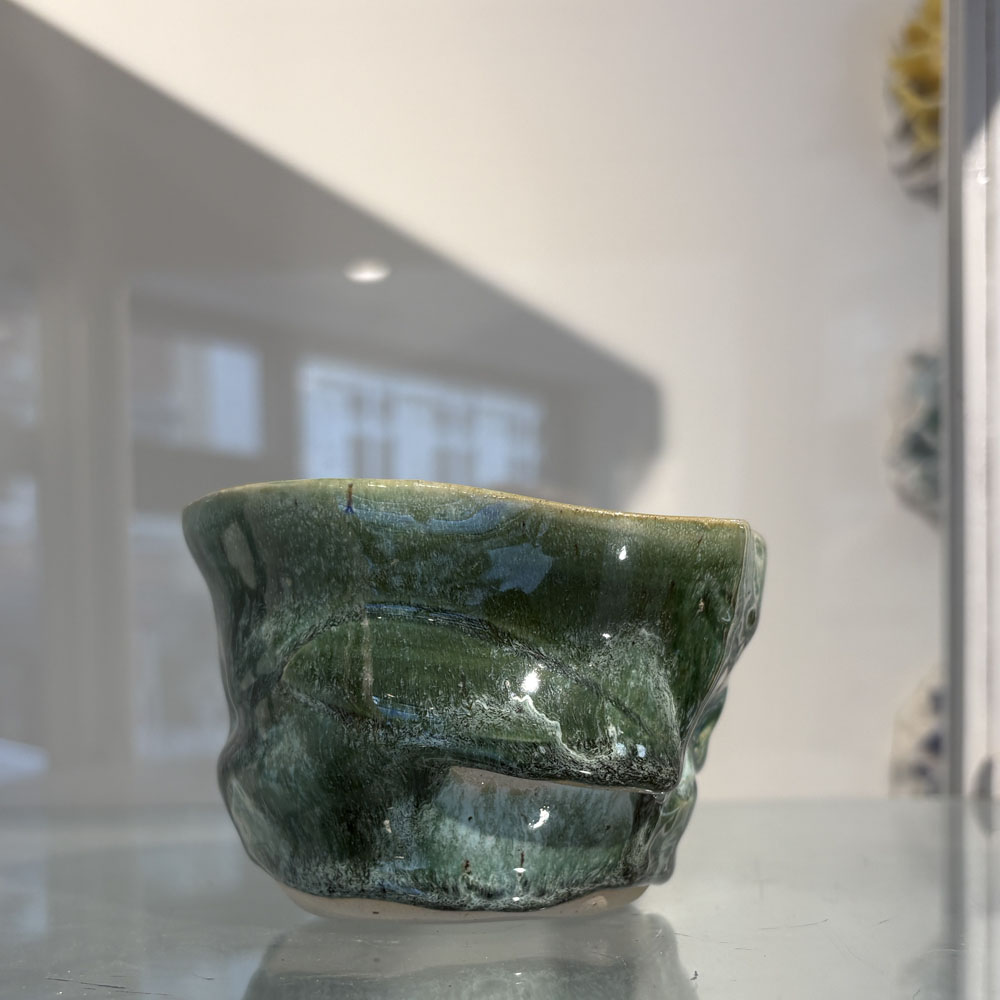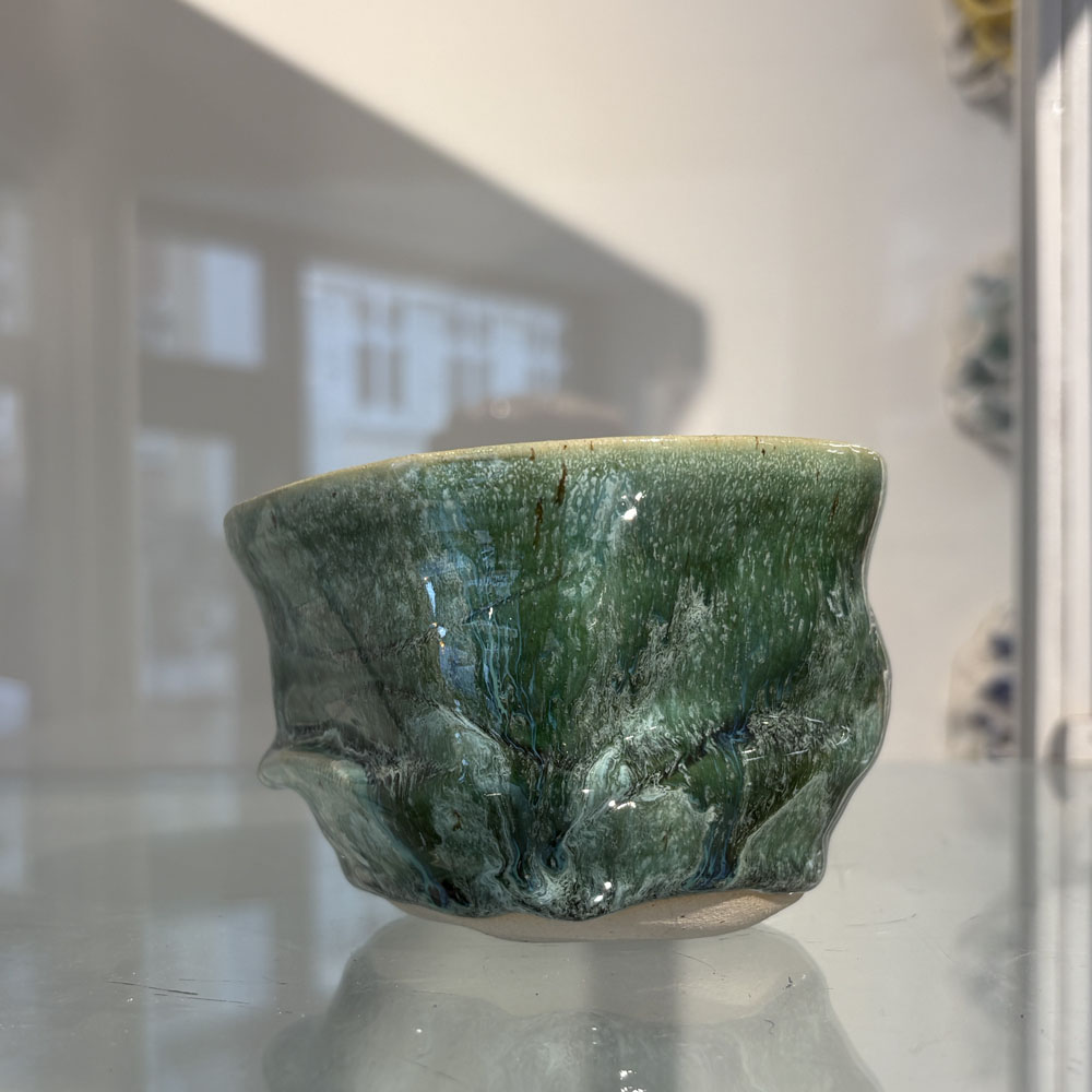Organisk håndlavet kop med grøn glasur | PiaV Keramik
