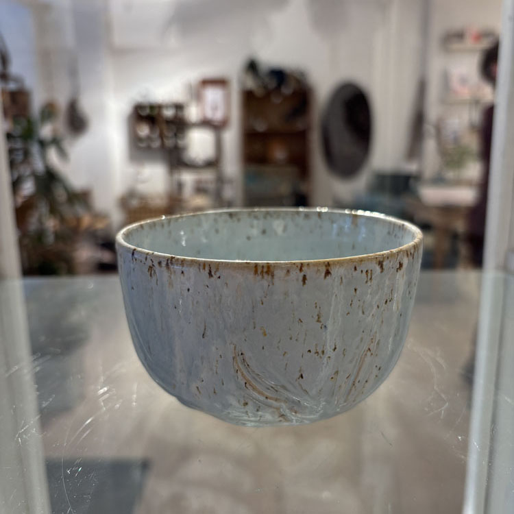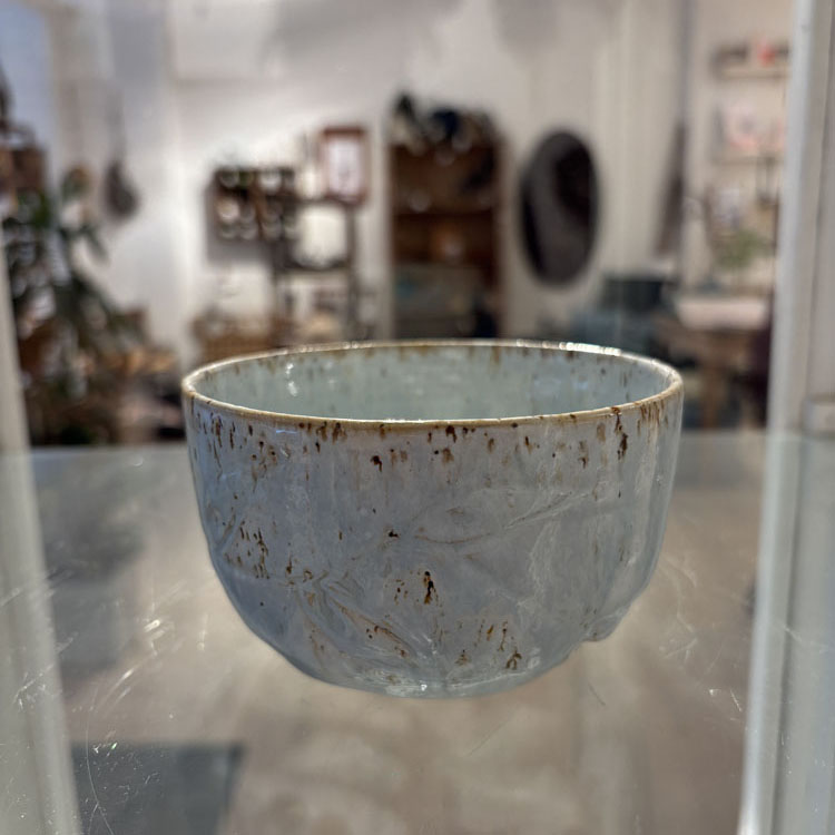 Dette håndlavede krus har en organisk form med bløde kurver og en smuk pastelglasur, der giver et let og roligt udtryk. Overfladen er dekoreret med lavapletter, som tilfører dybde og variation og gør hvert krus helt unikt.